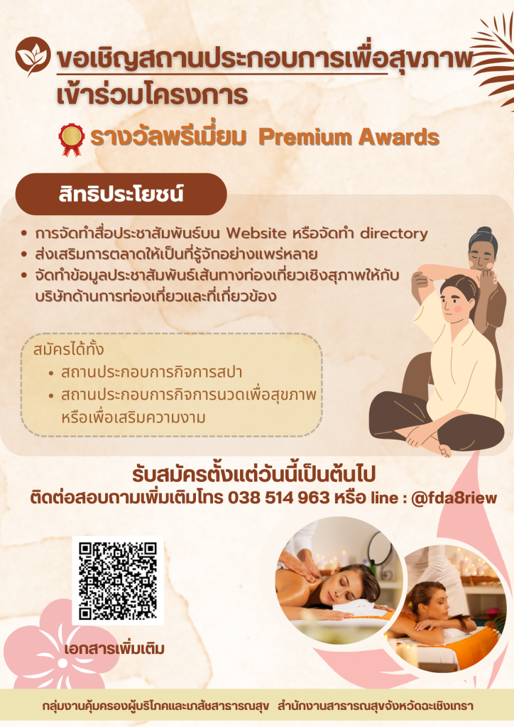 ขอเชิญสถานประกอบการเพื่อสุขภาพ เข้าร่วมประกวด รางวัล”Premium Award 2026″